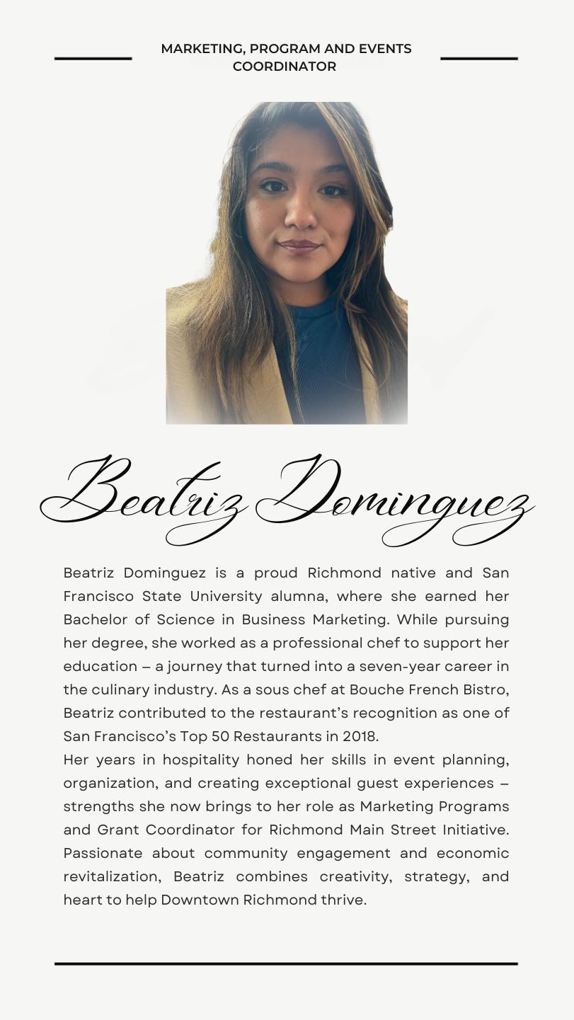 As part of Richmond Main Street Initiative’s Clean & Safe Program, the Downtown Neighborhood Ambassadors—Mary Green, Deonte Anderson, Aaron Jones, and Joshua Ruffen—provide essential maintenance throughout the downtown district. Their responsibilities include cleaning streets and sidewalks, as well as collaborating with City Public Works to report and address maintenance concerns, supporting RMSI’s mission to keep downtown Richmond clean, safe, and welcoming.